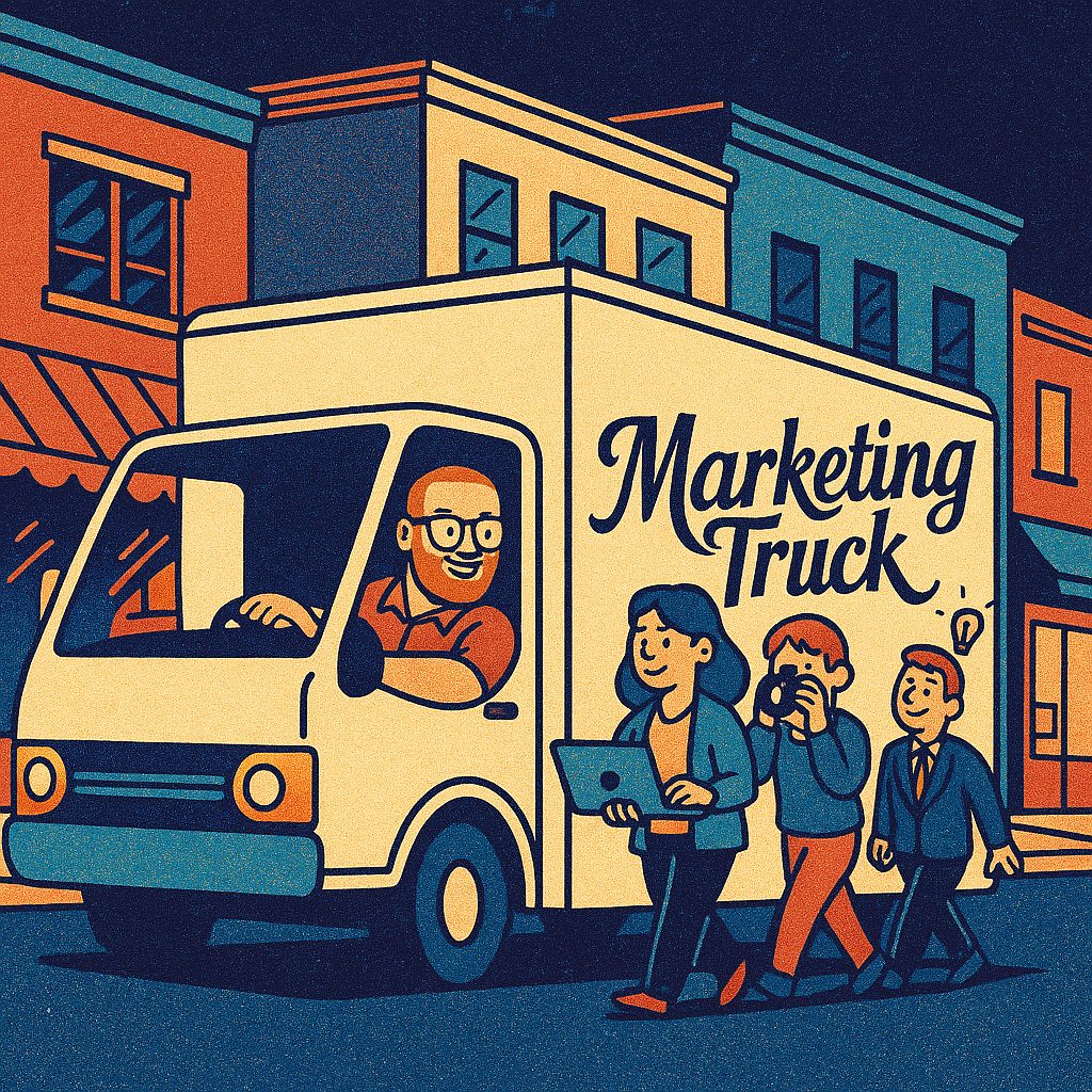 Marketing Truck is my own rig, but I don’t drive it alone. I work with a close crew of creative subcontractors — experts in data, design, digital ads, social media, and more. These are experts I’ve worked with and trusted for years. We plug in as needed, keep overhead low, and move fast. You’re never paying for bloated agency layers — just results.